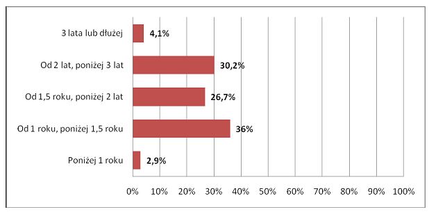 Najwięcej firm funkcjonowało zaledwie przez okres od 1 do 1,5 roku (36%). Aż 92,9% firm zakończyło działalność przed upływem 3 lat od przyznania dofinansowania.